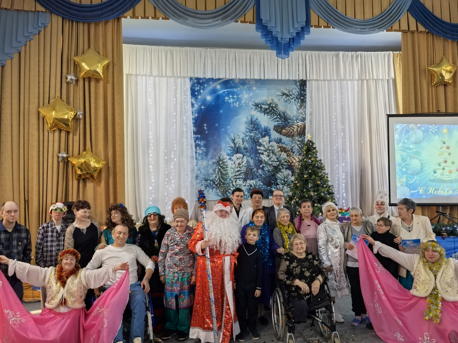 Сегодня в стенах нашего дома-интерната прошел грандиозный новогодний праздничный концерт под названием "Новогодняя сказка", который стал результатом совместного творчества сотрудников и проживающих.На сцене ожила новогодняя сказка, где каждый номер был наполнен добром, юмором и праздничным настроением.